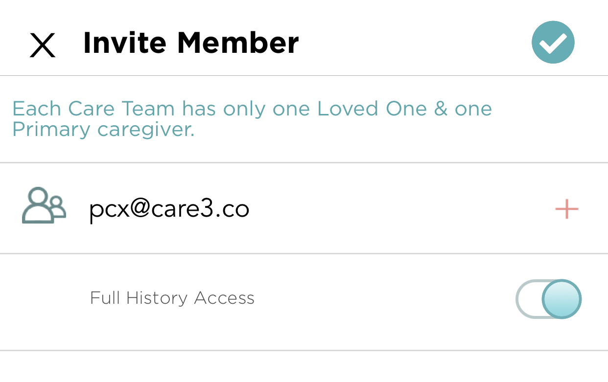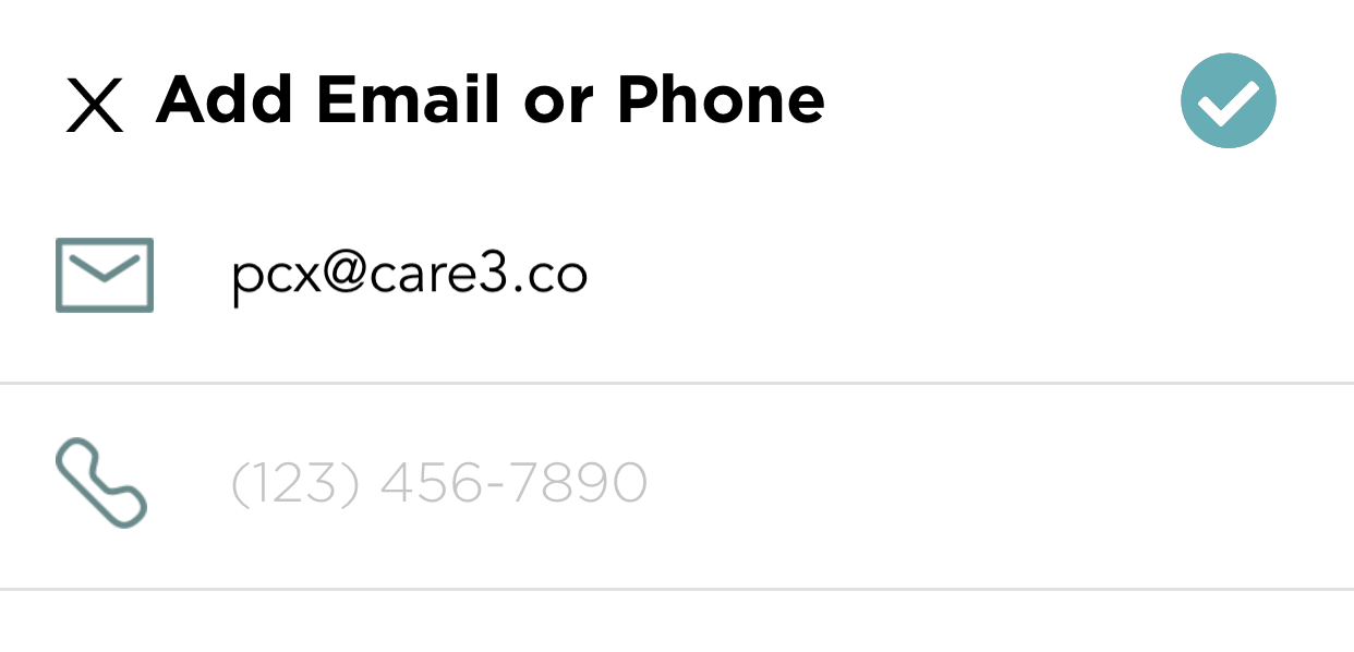5 . Add the person’s email address OR phone number and tap the check mark in the upper right corner.